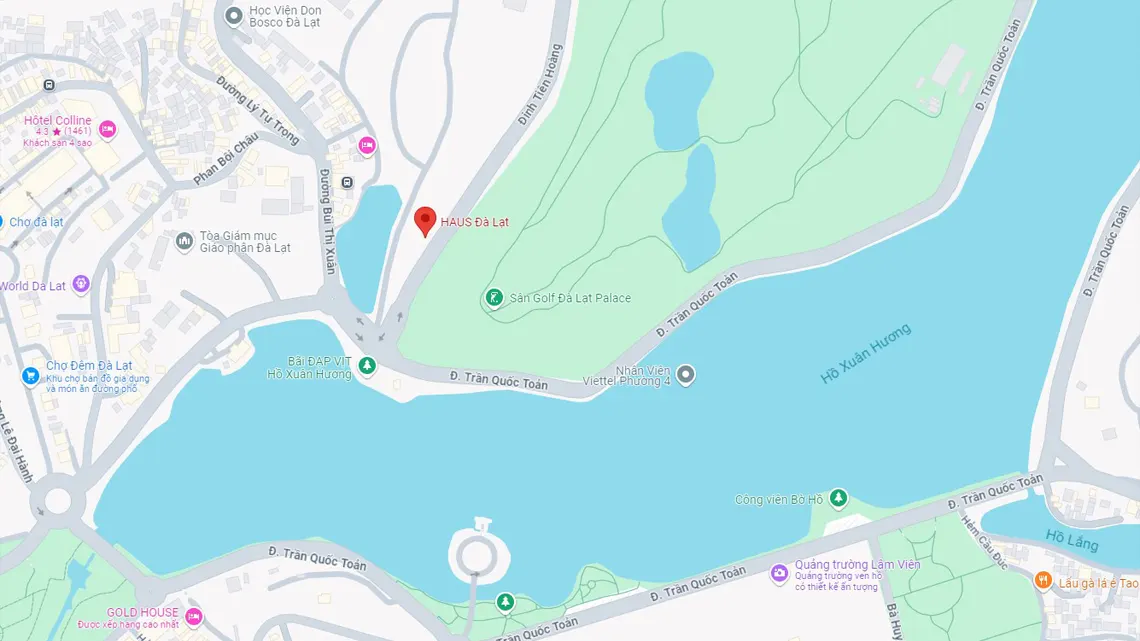 Haus Đà Lạt tọa lạc tại số 1 Đinh Tiên Hoàng, ngay bên bờ hồ Xuân Hương thơ mộng, Haus Da Lat kiêu hãnh sở hữu vị trí đất vàng cuối cùng đắt giá bậc nhất thành phố ngàn hoa.